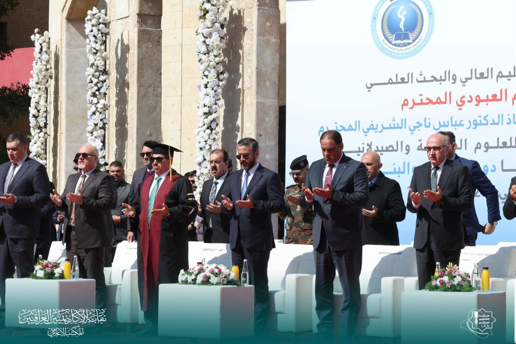 في حفل تخرج طلبة جامعة ابن سينا للعلوم الطبية والصيدلانية، حيث شهدنا عن قرب الدور الريادي والقيادةالحكيمة لمعاليه في إحداث نقلة نوعية في التعليم العالي العراقي.