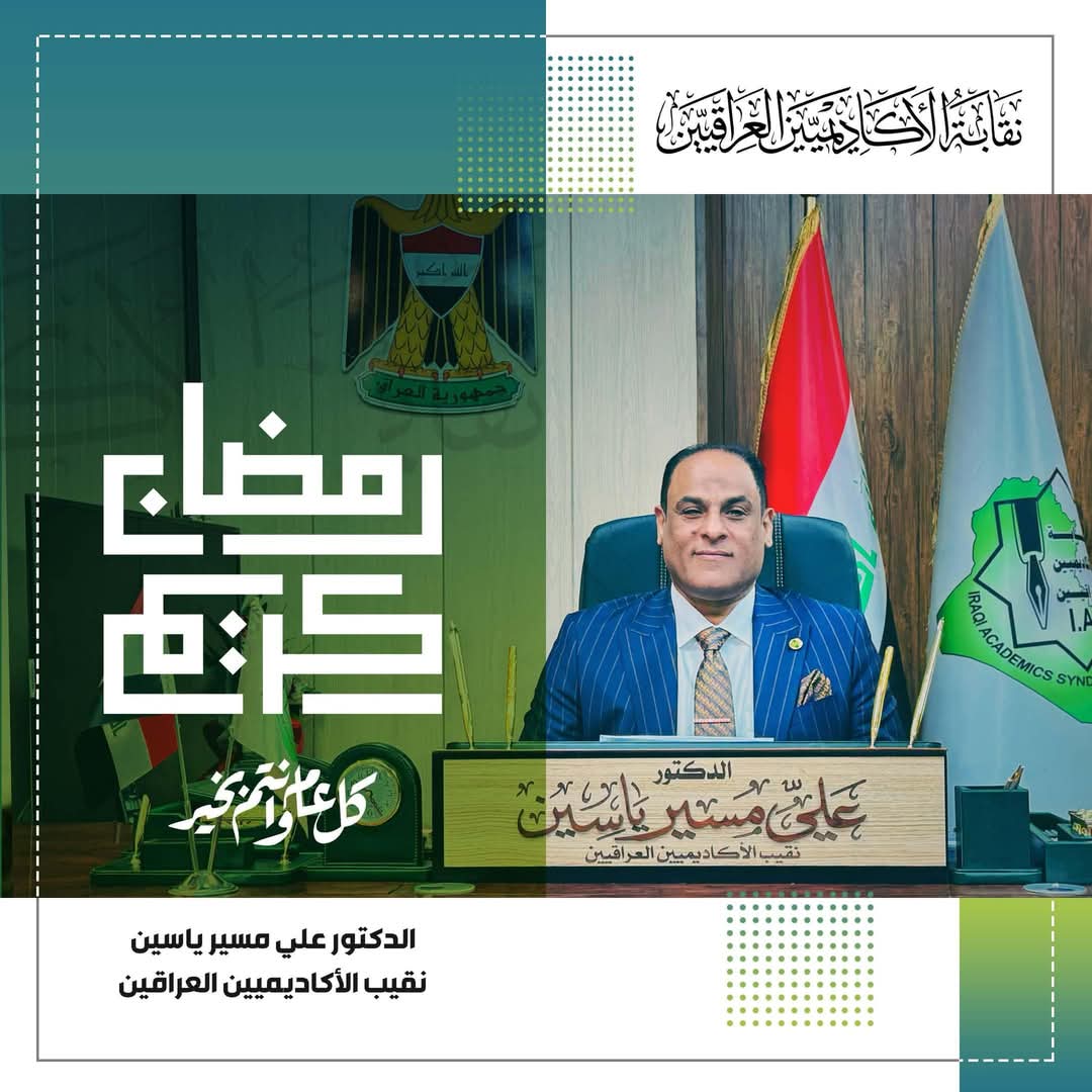 بمناسبة حلول شهر رمضان المبارك، أتقدم بأسمى آيات التهاني والتبريكات إلى الأكاديميين العراقيين وجميع أبناء شعبنا الكريم، سائلاً المولى عز وجل أن يعيده علينا وعليكم بالخير واليمن والبركات.